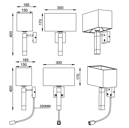 ITEM NO VA1237-2W Dimensions 300x400x185MM electrical E27 | E27 + LED COB 3000K CRI>80 Power E27 MAX 60W | E27 MAX 60W + LED 3W Material Aluminum + Iron + Wood Shade Black Fabric Color Black